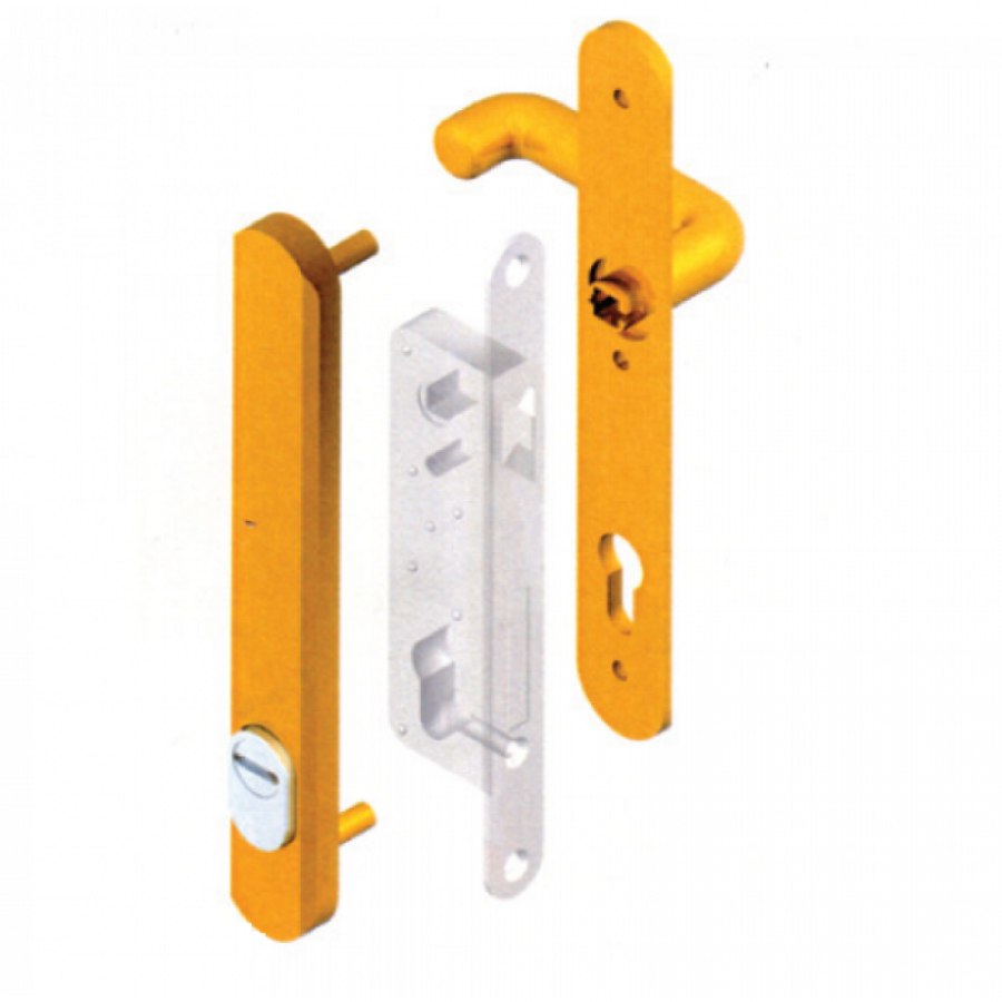 Το σύστημα έχει εξωτερικά μονοκόμματη πλάκα και εσωτερικά χειρολαβή. Η απόσταση μεταξύ κέντρο κυλίνδρου και κέντρο πομόλου μπορεί να είναι: .