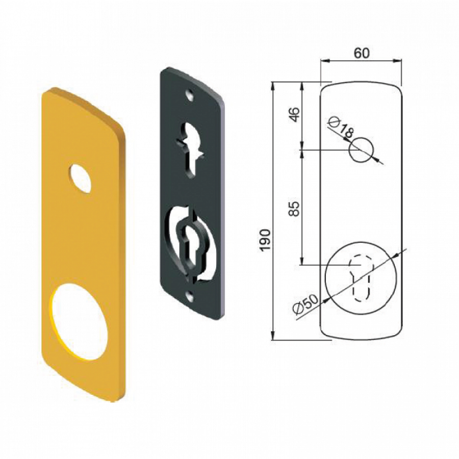 Ροζέτα κυλίνδρου τετράγωνη ελαφρύ τύπου με εξωτερικές βίδες για ξύλινες πόρτες. Διατίθεται ..