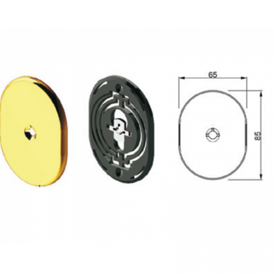 Ροζέτα βαρύ τύπου για κλειδί χρηματοκιβωτίου, μασίφ ορειχάλκινη, σε σχήμα οβάλ, με βίδες. Δια..
