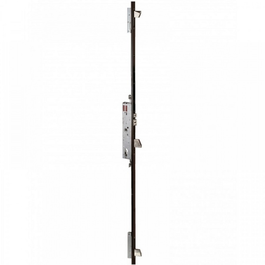 Ηλεκτρική κλειδαριά για αλουμινόπορτες με 3 σημεία κλειδώματος και μαχαιρωτές γλώσσες. Μπορεί να συνδεθεί με ρεύμα (12V AC/DC) ώστε με το πάτημα του BUTTON να τραβιέται η γλώσσα του πομόλου. Η κλειδαριά είναι διαθέσιμη με κέντρο 35mm. Το ύψος της κλειδαριάς είναι 2.60m.
