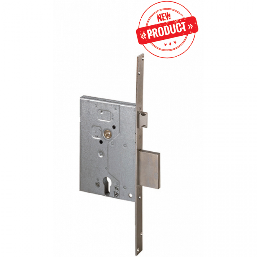 Κλειδαριά για αλουμινόπορτες με θέση για κύλινδρο οβάλ. Η κλειδαριά είναι διαθέσιμη με κέντρο 15..