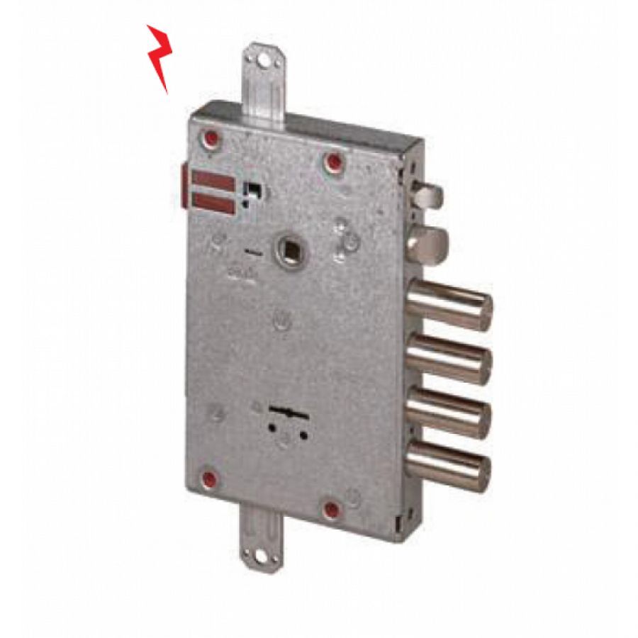 Ηλεκτρική κλειδαριά θωρακισμένης πόρτας κλειδί χρηματοκιβωτίου, κέντρο 60mm, 4 πίροι και γλώσσα πάνω. Συνοδεύεται με nucleo (ο συνδυασμός αλλάζει με alen).