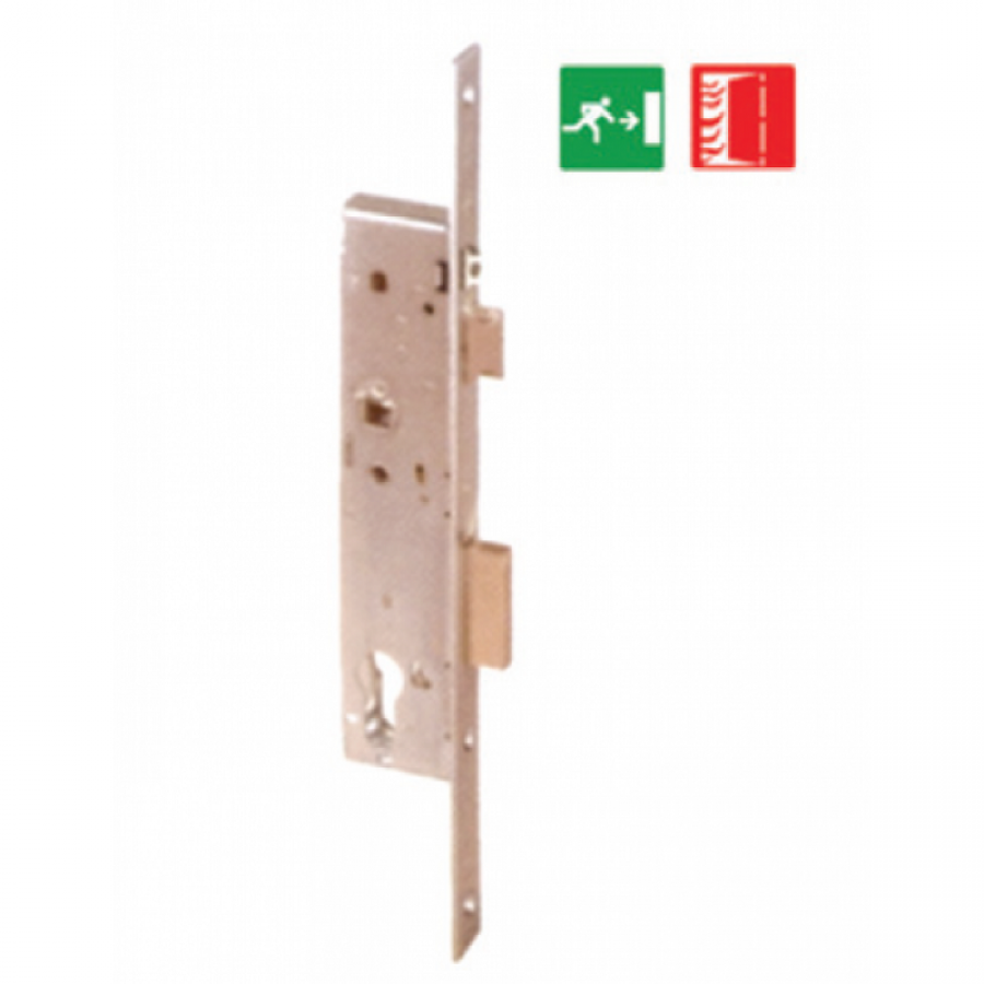 Kλειδαριά πυρασφάλειας και πανικού για μονή πόρτα. Tο πόμολο τραβάει γλώσσα και κλείδωμα μόνο από την εσωτερική πλευρά. H κλειδαριά έχει γλώσσα ασφαλείας (δεν ανοίγει με σύρμα, ταυτότητα κ.ά.). Εξωτερικά, το πόμολο τραβάει μόνο τη γλώσσα όταν η κλειδαριά είναι ξεκλείδωτη. Είναι απαραίτητη η χρήση διαιρούμενου άξονα στο πόμολο (split). Tο πρόσωπο είναι 24mm και το καρέ 9mm. Η απόσταση μεταξύ του κέντρου του κυλίνδρου και του καρέ είναι 92mm. Η κλειδαριά είναι διαθέσιμη με κέντρο 45mm.