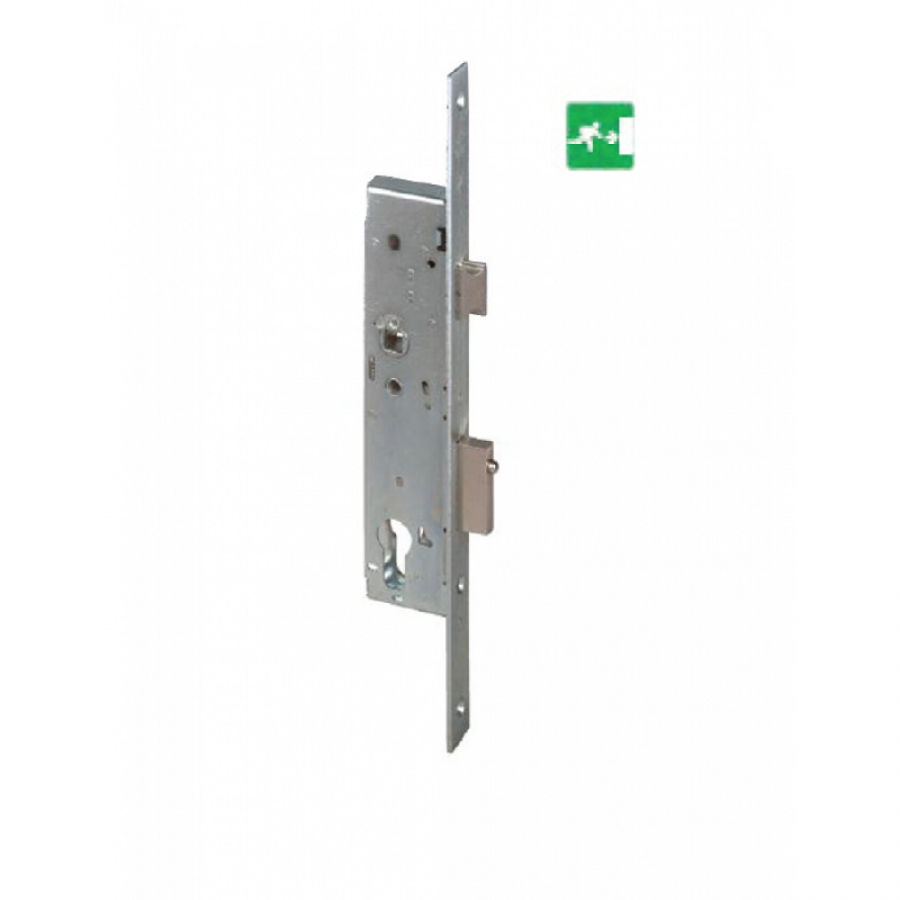 Κλειδαριά πανικού και πυρασφάλειας για το κυρίως φύλλο δίφυλλης πόρτας. Με τον κύλινδρο κλειδώνει και ξεκλειδώνει (εσωτερικά και εξωτερικά). Ο κύλινδρος δεν τραβάει τη γλώσσα του πομόλου (ούτε εξωτερικά ούτε εσωτερικά). Το πόμολο εσωτερικά λειτουργεί πάντα και εξωτερικά τραβάει τη γλώσσα του πομόλου πάντα. Η απόσταση μεταξύ του κέντρου του κυλίνδρου και του καρέ είναι 92mm. To καρέ είναι 9mm. Το πρόσωπο της κλειδαριάς έχει πλάτος 2,4cm και το μήκος του προσώπου είναι 31,5cm. Για τη λειτουργία της κλειδαριάς απαιτείται διαιρούμενο αξονάκι. Η κλειδαριά είναι διαθέσιμη με κέντρο 35mm ή 40mm.