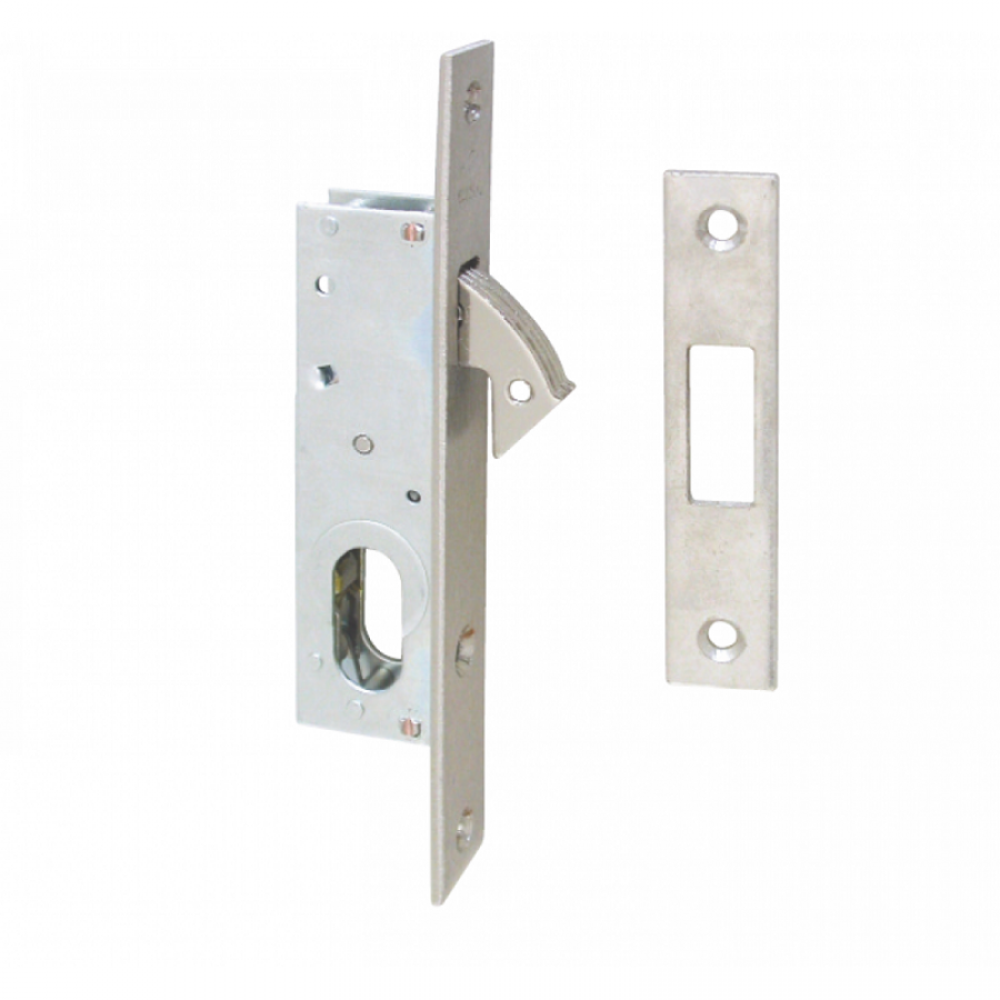 Κλειδαριά με γλώσσα παπαγαλάκι και θέση για οβάλ κύλινδρο. Η κλειδαριά είναι διαθέσιμη με κέντρο 16mm.