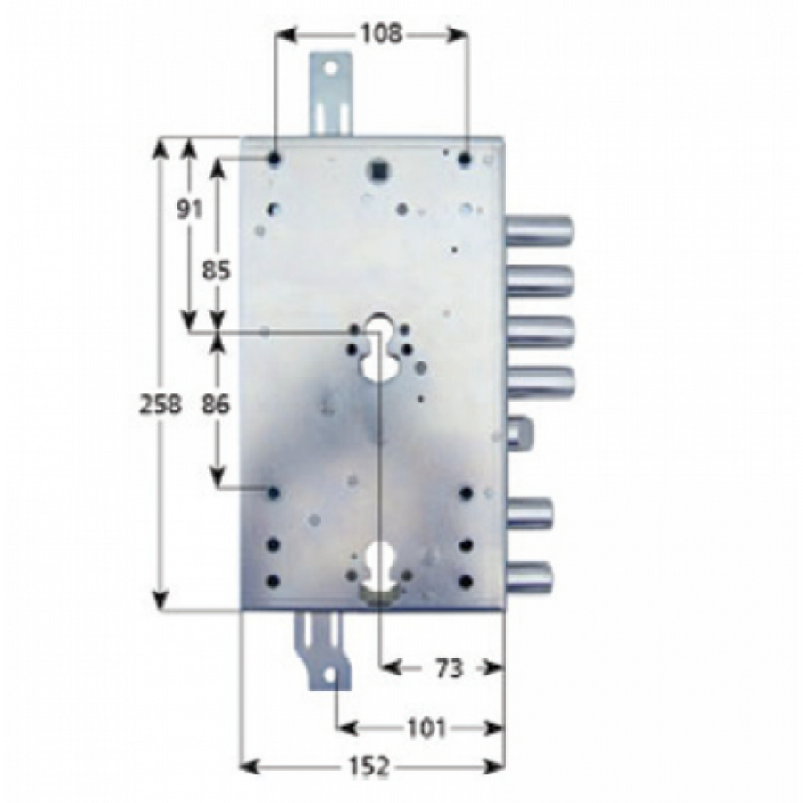 Κλειδαριά θωρακισμένης πόρτας Dierre με γρανάζι, καταπέλτη και διπλό κύλινδρο, κέντρο 70mm ή 60mm, 4 πίρους, γλώσσα και 2 πίρους κάτω. Η απόσταση των πάνω πίρων είναι 28mm και των κάτω πίρων 37mm. H κλειδαριά γίνεται εύκολα δεξιά ή αριστερή