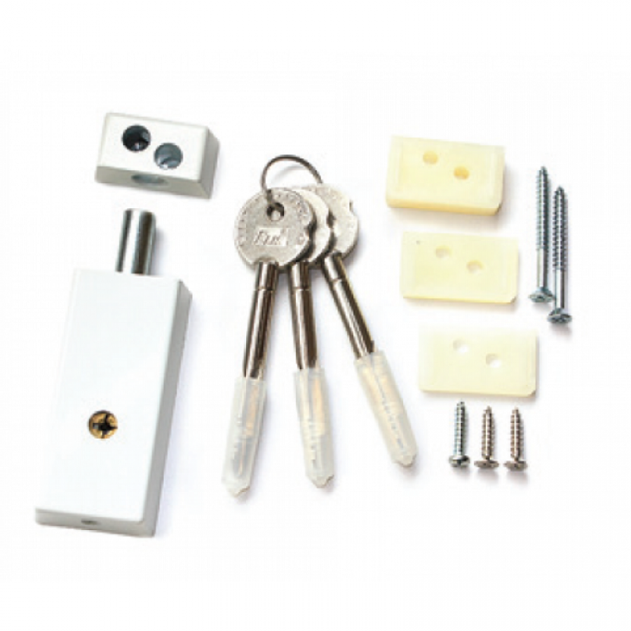 Κουτιαστή κλειδαριά με κέντρο 45mm για συρόμενα-ανοιγόμενα παράθυρα και πόρτες αλουμινίου. Σε χρώμα λευκό ή μαύρο. Διατίθεται με 3 κλειδιά σταυρού μήκους 75mm. Διαστάσεις: 75x36x20mm.